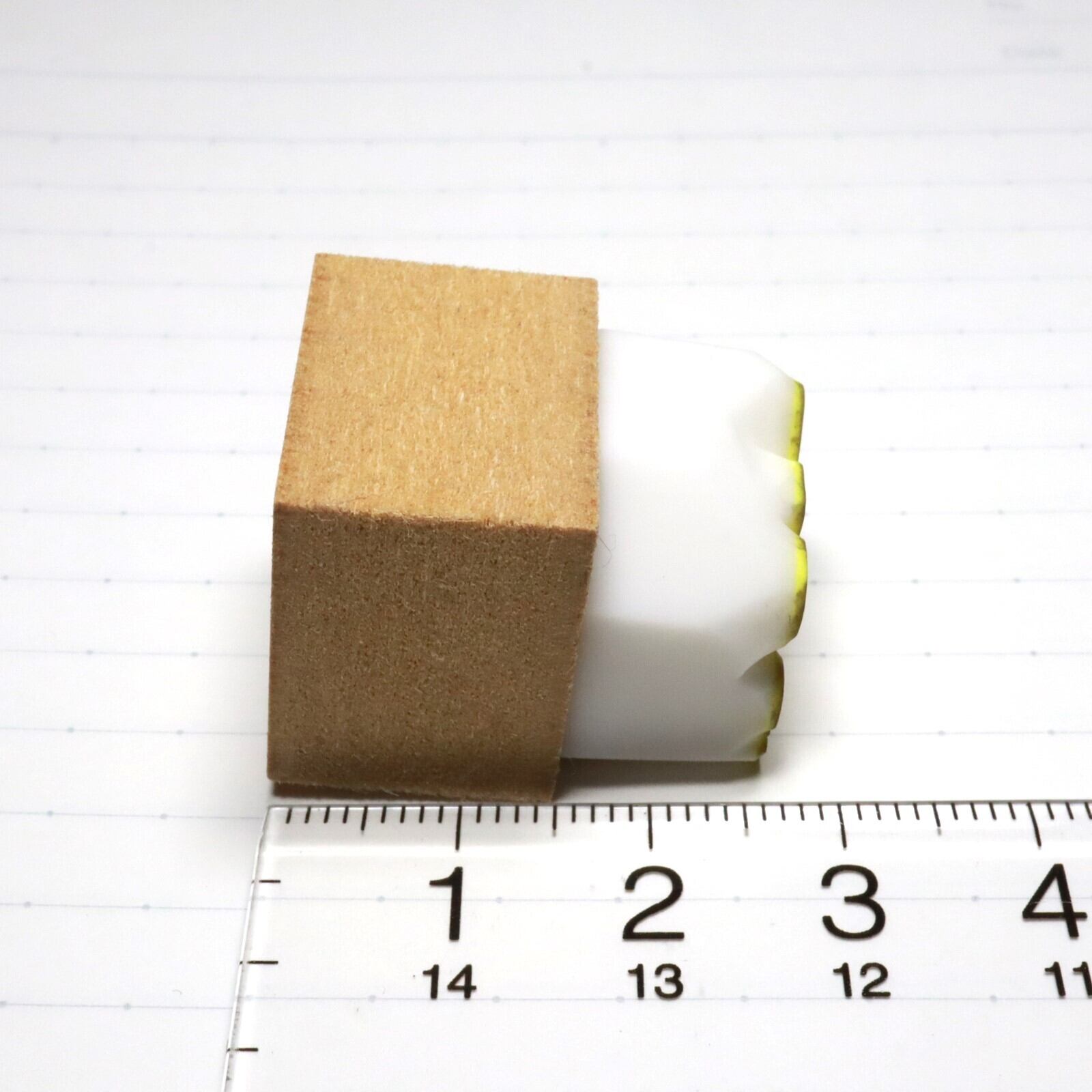 ・消しゴムはんこ専用のゴム板を使っていますので通常の使用ではふつうの消しゴムのようにボロボロ欠けていくようなことはありませんが、印面を引っかいてしまった時や落下した際には一般的なゴム印よりもダメージを受けやすいです。優しくお取り扱いください。