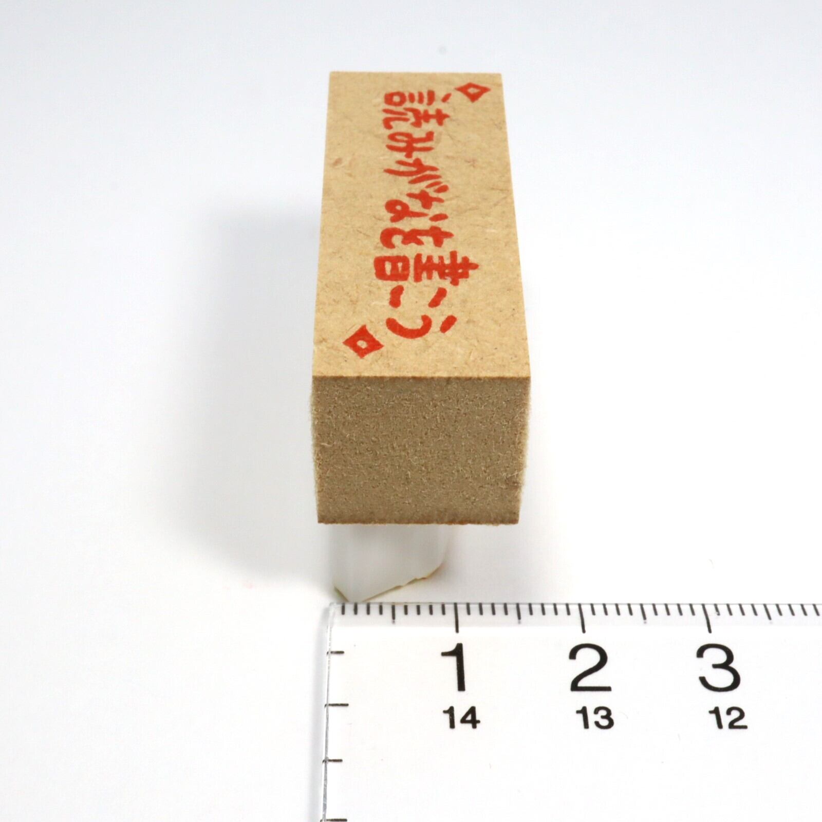 ・消しゴムはんこ専用のゴム板を使っていますので通常の使用ではふつうの消しゴムのようにボロボロ欠けていくようなことはありませんが、印面を引っかいてしまった時や落下した際には一般的なゴム印よりもダメージを受けやすいです。優しくお取り扱いください。