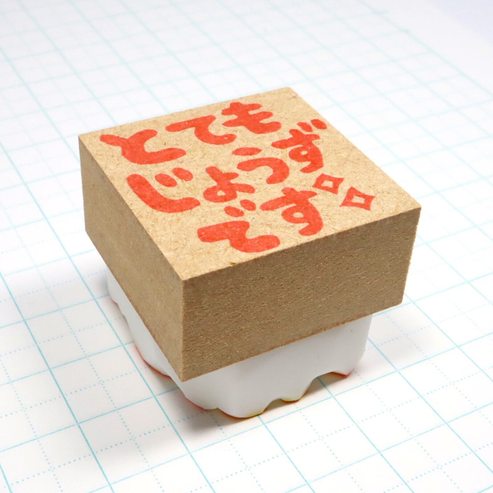 ・消しゴムはんこ専用のゴム板を使っていますので通常の使用ではふつうの消しゴムのようにボロボロ欠けていくようなことはありませんが、印面を引っかいてしまった時や落下した際には一般的なゴム印よりもダメージを受けやすいです。優しくお取り扱いください。